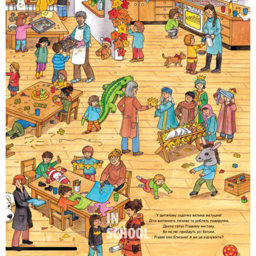Чарівне різдво 978-966-97895-4-9 У місті, в горах, у дитячому садочку чи у розважальному центрі — дух Різдва витає усюди. Він розчиняється в повітрі і наповнює кожну сторінку книги святковим настроєм.Безліч деталей та прихованих об’єктів поведуть за собою у зимову подорож, сповнену неймовірних пригод та відкриттів.Розглядай, шукай, фантазуй і створюй власні різдвяні історії разом з героями барвистого віммельбуха. До речі, у читачів є нагода позмагатися в уважності і знайти веселих різдвяних котів на наших сторінках.