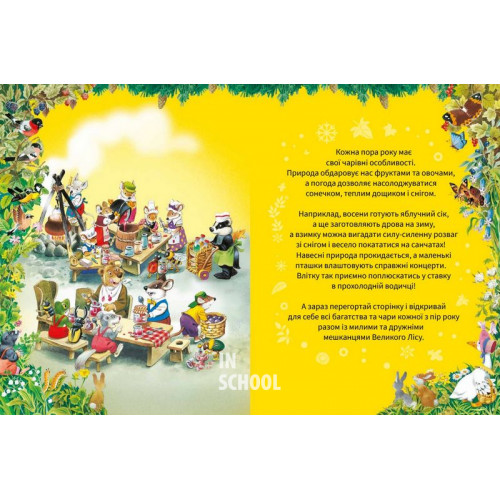 Велика книжка про пори року., Анна Казаліс 978-966-982-193-5 Ця книжка відчинить двері до дивовижного світу, де звірі й пташки живуть у злагоді й тішаться природі за будь-якої пори року. Вони радо зустрічають весну пташиним концертом, улітку влаштовують змагання з плавання, варять найсмачніше у світі варення, восени збирають плоди й пригощають одне одного різною смакотою, а тоді дружно готуються до сніжної зими, коли так весело кататися на санчатах і ладитися до Різдва.Кумедні історії не тільки познайомлять малюків із чарами кожного сезону, а й допоможуть усвідомити цінність родинного тепла, вірної дружби й взаємодопомоги.