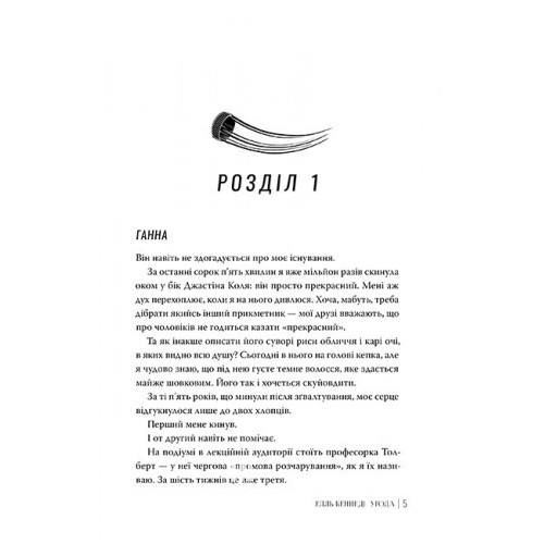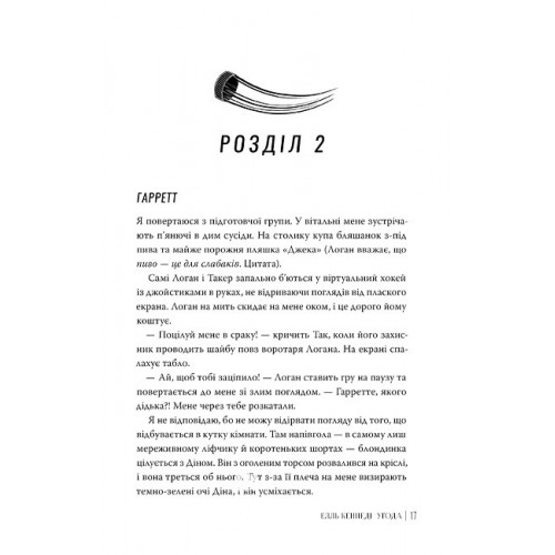 Рідна мова Угода. Цикл Поза кампусом Книга 1., Елль Кеннеді 978-617-8512-04-0 Ганна, яка склала іспит на відмінно, будь-що хоче привернути до себе увагу Джастіна. А Гарретт, що має небиякий досвід у мистецтві флірту, готовий на все, аби лиш вдало пройти переекзаменування. Тож, коли шляхи Ганни й Гарретта перетинаються, вони укладають угоду, що допоможе обом реалізувати свої найбільші бажання. Якби вони знали, до чого це приведе, то не повірили б.