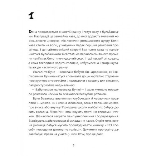 Видавництво "Ще одну сторінку" Як виростити супербабусю?., Леся Мовчун 978-617-52-2257-7 Де беруться бабусі? Це лісовички з казкового лісу. З дитинства вони навчаються всіляких бабусяцьких прийомчиків і хитрощів, а потім їдуть у місто виконувати бабусяцьку місію. Та перш ніж отримати своє персональне онуча, кожна складає іспит на звання супербабусі. Цього разу все сталося не так, як гадалося! Легковажну лісовичку Бусю обманули й викрали, а її суперниця Буня разом з єнотом Шкодою вирушають на її пошуки. На шляху вони зустрічають курочку Касю, пана Болотяна, Івана Целофановича Макулатурського, збитошних Бомка і Цьомка... «Як виростити супербабусю?» розповість про магію справжньої дружби та підтримки. Усередині книжки читачів чекає особливий сюрприз — інтерактивна настільна гра з картками й фішками для забав з друзями чи родиною.