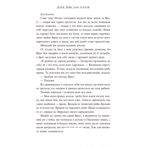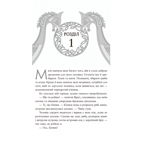 Сага про невиткані долі. Доля, вписана в кров., Єнсен Данієль 978-617-09-9445-5 Усе почалося з патрання риби та палкої мрії Фреї бути воїтелькою. Так, вона обтяжена шлюбом з ненависним чоловіком, але в її крові — таємниця. Настільки жаска, що навіть богам цікаво, як обернеться життя цієї смертної. Чи боротиметься вона заради об’єднання країни під проводом владолюбного ярла? І водночас із власною пристрастю до його палкого сина… Єдине, що знають усі, — вона благословенна богами діва-щитоносиця, народжена під кривавим місяцем, і хто керує її долею, той керуватиме всім Скаландом.Жадаючи нового шлюбу, Враґі просить ярла засвідчити розрив й прирікає дружину на смерть в нерівному двобої. Але несподівано нитка повсякденної рутини рветься з соковитим звуком, з яким в череп Враґі устромляється запущена Фреєю сокира. А разом із цим на світ виринає найстрашніша таємниця жінки: вона — дочка богині Глін, діва-щитоносиця. І це про неї йдеться в пророцтві: хто керує долею воїтельки, той об’єднає Скаланд під своєю владою.Епічна романтика скандинавської міфології — зрада, битви, магія та заборонене кохання в першому томі «Саги про невиткані долі»! Шалений екшн і приголомшливий фінал — запорука вибухового продовження! І тепер, здобувши Фрею за другу дружину, владолюбний ярл відчайдушно прагне корони, а воїтелька мусить битися, долаючи випробування, які посилають боги. Та найбільше її випробування — це пристрасть, заборонене кохання до ярлового сина, Б’єрна.