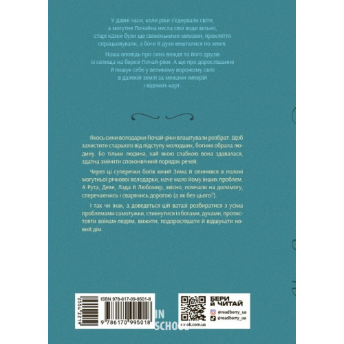 Вихованці Почай-ріки. У плавнях трохи туману., Юлія Баткіліна 978-061-70-9950-18 У давні часи, коли ріки з’єднували світи, а могутня Почайна несла свої води вільно, старі казки були ще свіженькими мемами, прокляття спрацьовували, а боги й духи вешталися по землі. Наша оповідь про сина вождя та його друзів із селища на березі Почай-ріки. А ще про дорослішання й пошук себе у великому ворожому світі в далекій землі за межами імперій і відомих карт.Якось сини володарки Почай-ріки влаштували розбрат. Щоб захистити старшого від підступу молодших, богиня обрала лю- дину. Бо тільки людина, хай якою слабкою вона здавалася, здатна змінити споконвічний порядок речей. Через ці суперечки богів юний Зима й опинився в полоні могутньої річкової володарки, наче мало йому інших проблем.А Рута, Деян, Лада й Любомир, звісно, помчали на допомогу, сперечаючись і сварячись дорогою (а як без цього?). І так чи інак, а доведеться цій ватазі розбиратися з усіма проблемами самотужки, стикнутися із богами, духами, протистояти воїнам-людям, вижити, подорослішати й відшукати новий дім.