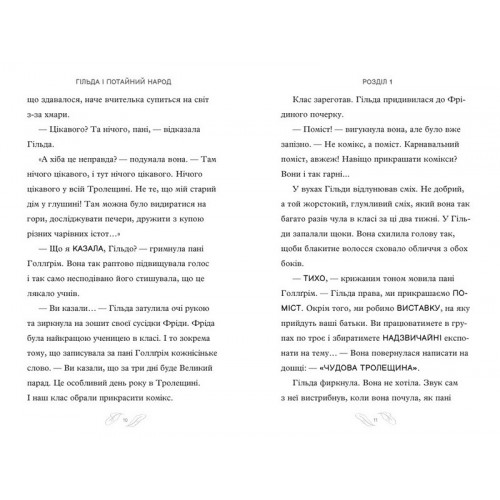 Видавництво "ARTBOOKS" Гільда і великий парад., Стівен Дейвіс 978-617-523-286-6 Вирушай у другу подорож разом із відчайдушною шукачкою пригод Гільдою! На тебе чекає зустріч із багатьма незвичайними подорожніми...Гільда і мама переїхали жити в гамірне місто. Тролещина анітрохи не схожа на прегарну дику місцину, де вони мешкали доти. Коли Гільді задали у школі зробити проєкт про чудеса Тролещини, вона не могла знайти жодного.Аж раптом з’явилася така нагода, така пригода, що годі встояти! Дорогою вона зустріне ельфів, вогнедишних драконів, таємничого балакучого птаха... Можливо, нові друзі все ж зуміють змінити на краще її думку про Тролещину?