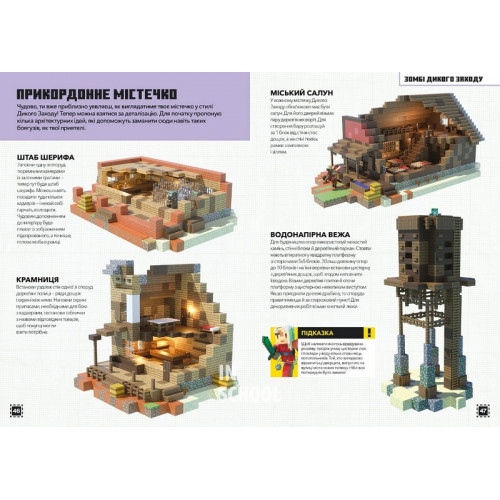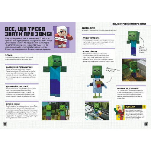 Видавництво "ARTBOOKS" MINECRAFT Будуймо разом! Країна зомбі., Стефані Мілтон 978-617-7688-84-5 Мабуть, у тебе вже виникала думка збудувати окрему величезну локацію, на якій можна було б воювати із зомбі?Так-от, наш довідник тобі у цьому допоможе! На його сторінках ти знайдеш найрізноманітніші ідеї — від арени для боїв і населеного мобами цвинтаря до міста нечисті й супертаємної лабораторії для створення зомбі та зцілення інфікованих зомбі-вірусом. Дотримуйся інструкцій — і незчуєшся, як перед тобою постане ціла країна зомбі для спільного підкорення із друзями!