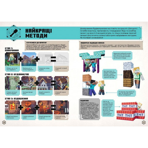 Видавництво "ARTBOOKS" MINECRAFT Посібник з творчого режиму, Томас Макбраєн 978-617-523-152-4 Відшукай натхнення на створення унікальних споруд у новому посібнику Minecraft!У Minecraft можливо все! Тут ти можеш побудувати все, що душа забажає — варто лише почати. Проте як? У цьому тобі допоможе новий офіційний посібник з творчого режиму. З його допомогою ти дізнаєшся все про режим творчості й зможеш збудувати середньовічний замок або ж навіть таємну футуристичну базу. Ти точно знайдеш тут те, що допоможе тобі здобути омріяні вміння будівельника!