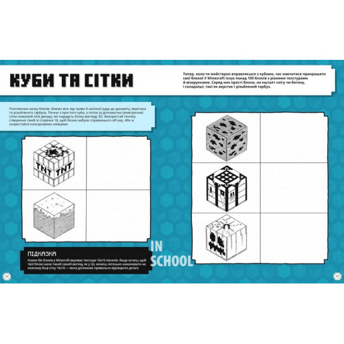 Видавництво "ARTBOOKS" MINECRAFT Як малювати., Джо Мак-Ларен 978-617-523-125-8 Хочеш навчитися малювати свої улюблені предмети й мобів з Minecraft? Тоді розгортай цю книжку й почнемо!Гра Minecraft стала джерелом натхнення для творчих людей з першого ж дня релізу: сотні авторів ділилися своїми витворами мистецтва зі спільнотою. І це не дивує, адже Minecraft має стільки всього для розпалу креативності!У цій книжці розповідається про розвиток навичок малювання та різні корисні техніки, а покрокові інструкції зі схемами мобів, а також споруд і рослин, допоможуть дітям розпочати свою мистецьку подорож світом Minecraft. Дізнайся, як малювати все: від простого куба до улюблених мобів. Створи кубоподібну сценку з Minecraft, для цього всередині навіть є сторінки, на яких ти зможеш повправлятися у своїх навичках малювання. Це — найкраща книжка для творчих гравців Minecraft.