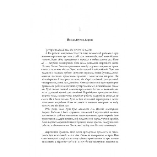 Видавництво "ARTBOOKS" Пачінко., Мін Джін Лі 978-617-523-210-1 Історія рідко буває доброзичливою. Епічна сага Мін Джін Лі розповідає про кілька поколінь незаможної, але гордої родини іммігрантів, які уперто намагаються взяти долю у свої руки.На початку 1900-х юна Санджа, обожнювана донька рибалки-каліки, закохується у багатого незнайомця, якого зустріла на березі моря. Він обіцяє покласти весь світ їй до ніг, але коли Санджа дізнається, що вагітна і що її коханий уже одружений, вона відмовляється ставати його утриманкою. Натомість дівчина приймає пропозицію шлюбу від м’якосердого хворобливого священника, який прямує до Японії. Рішення Санджі покинути батьківщину й розірвати стосунки з владним батьком її сина покладає початок драматичній сазі, яка відлунює на багато поколінь.«Пачінко» — це історія про неприйняття на офіційному та громадському рівнях, яке переживали й досі переживають в Японії японці корейського походження.Роман Мін Джін Лі став одним із фіналістів National Book Award. Бестселер за версією The New York Times, «Пачінко» входив до списків 10 найкращих книжок року USA Today, BBC та Нью-Йоркської громадської бібліотеки. Він також увійшов до 75 списків найкращих книжок року, включно зі списками від NPR, PBS та CNN.