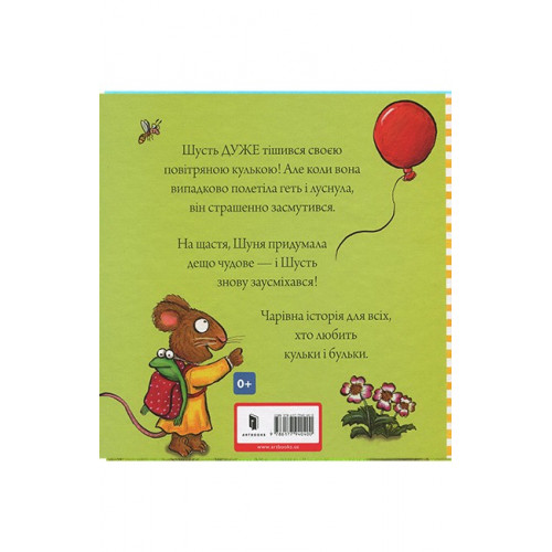 Видавництво "ARTBOOKS" Шусть і Шуня. Велетенська кулька., Аксель Шеффлер 978-617-7940-40-0 Зайчик Шусть і мишка Шуня — найкращі друзі. Усі в містечку знають про них, а ще про велику червону повітряну кульку, яку зайчик постійно носить із собою. Кулька радує всіх мешканців і дарує їм усмішки, тож Шусть дуже пишається нею. Він бере її з собою на прогулянки та навіть у крамницю, аби зробити інших звірят трохи щасливішими. Але одного разу трапляється непоправне — Шусть випадково відпускає мотузочку й втрачає свій скарб.