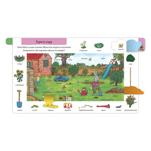 Видавництво "ARTBOOKS" Шусть і Шуня. Велика книжка слів., Аксель Шеффлер 978-617-523-224-8 Серія «Шусть і Шуня» присвячена важливим проблемам, з якими стикаються всі дітлахи молодшого дошкільного віку.Веселих друзів Шустя і Шуню придумав і намалював геніальний Аксель Шеффер, один з найкращих дитячих ілюстраторів, «батько» знаменитого Груффало.Нова книжка-пошуківка для найменших стане чудовим доповненням колекції. Вона розкаже все про дозвілля Шустя та Шуні й про їхній побут, а також запропонує нові теми для обговорення. А весела гра в пошук зображень допоможе малюкові більше дізнатися про навколишній світ.Ця яскрава й барвиста книжка з віконцями відразу приверне увагу малюка, і він не захоче випускати її з рук. А сотні картинок і слів заохотять малечу говорити.