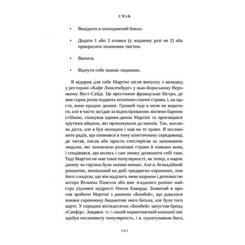 Видавництво "ARTBOOKS" Смак. Мої історії про життя та їжу., Стенлі Туччі 978-617-523-367-2 Акторські мемуари? Кулінарна книга? І те, й інше!Їжа — не просто важлива частина мого життя. Це в принципі і є моє життя. Їжа водночас тримає мене на місці й веде шукати пригод. Вона і заспокоює, і кидає виклики. Це матеріал, що створив мене творчого й мене домашнього. Їжа дала змогу висловлювати свою любов до людей і заводити знайомства з людьми, яких я полюбив згодом.Перш ніж стати «тим самим актором» із «Диявол носить “Прада”», «Милих кісток» чи «Голодних ігор», а також творцем ідеального негроні, Стенлі Туччі ріс в італо-американській родині, яка кожен вечір проводила за столом. Ця книжка — його роздуми про взаємозв’язок життя та їжі, гастрономічна подорож у минуле, як щасливе, так і болісне, написана з любов’ю й щедро приправлена фірмовим гумором.