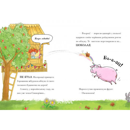Видавництво "ARTBOOKS" Свиноріжко! Порося-єдиноріг. Драконяча халепа., Ханна Шоу 978-617-523-230-9 Зустрічайте принцесу Горошинку та її королівське порося!Свиноріжко та принцеса Горошинка хочуть вирушити у ПРИГОДУ, але натомість стається ХАЛЕПА — примхлива дракониця начарувала... динозавра.Невже динозавр влаштує РОЗГАРДІЯШ у Королівстві Сяєкрай? Чи вдасться принцесі Горошинці й Свиноріжку його зупинити?