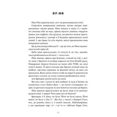 Видавництво "ARTBOOKS" Світанок Малібу paperback., Тейлор Дженкінс Рід 978-617-523-320-7 Увага! Продукція сексуального характеру або інша продукція з віковим обмеженням. Продаж неповнолітнім заборонено. Продаж відповідно до вікового обмеження.Четверо знаменитих братів і сестер влаштовують епічну вечірку на завершення літа… Мине лише двадцять чотири години, а їхні життя зміняться назавжди.Малібу. Серпень 83-го. Довгоочікуваний день традиційної літньої вечірки в Ніни Ріви. Потрапити на вечірку хочуть всі – адже всім кортить побувати в зірковому товаристві Рів. Ніна – талановита серферка й фотомодель. Брати Джей і Гуд – чемпіон з серфінгу й видатний фотограф. І їхня маленька пестунка, Кіт. Цю четвірку обожнюють не в лише в Малібу, але у всьому світі – тим паче, вони нащадки легендарного співака Міка Ріви.От тільки цьогоріч Ніні зовсім не хочеться, аби цей день настав. Гуд теж не в захваті, Джей, навпаки, рахує хвилини, а Кіт має кілька секретів.Вже опівночі вечірка цілковито вийде з-під контролю. А вранці особняк ущент згорить. Але до того часу рікою тектиме спиртне, гратиме музика, відкриватимуться таємниці й любовні історії, в яких народжувалися й якими жили кілька поколінь цієї родини. Допоки на світанку не спалахне перша іскра.«Світанок Малібу» – це історія про одну незабутню ніч. Ніч, коли кожен зазирне в скриню, успадковану від попереднього покоління. Ніч, коли кожен мусить обрати, що з того спадку залишити собі, а що – залишити в минулому.