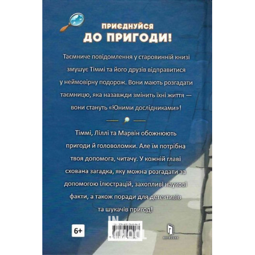 Видавництво "ARTBOOKS" Тіммі Тоббсон. Родинна таємниця., Єнс Ваґнер 978-617-7940-96-7 Таємниче повідомлення у старовинній книзі змушує Тіммі та його друзів відправитися у неймовірну подорож. Вони мають розгадати таємницю, яка назавжди змінить їхні життя — вони стануть «Юними дослідниками»!• Це пригодницька історія з яскравими ілюстраціями, що мають не лише декоративну функцію — на них заховані підказки до загадок, які читач розгадуватиме разом із головними героями.• У кінці книжки міститься добірка цікавих енциклопедичних фактів, а також практичні завдання! Маленький детектив навчиться знімати відбитки пальців, а для шукачів пригод тут розміщено інструкцію, як опріснювати морську воду.