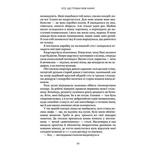Видавництво "ARTBOOKS" Усе, що тільки між нами., Люсі Скор 978-617-523-249-1 Друга частина гарячої Нокмаутської трилогії!Неш завжди був для всіх «хорошим братом Морґаном», усміхненим і люб’язним. Проте зараз шеф поліції відновлюється після поранення, і його південний шарм потьмянів через панічні атаки та кошмари. Він нікому не розказує, що з ним коїться. Проте нова сусідка, розумна й зваблива Ліна, бачить, що над молодшим Морґаном згущається морок. Зазвичай вона уникає фізичного контакту, — якщо тільки не вона його ініціює, — та на Нешеві дотики чомусь реагує інакше. Між ними виникає сильний зв’язок, який дасть Нешеві нову опору в житті, а Ліну змусить поставити під сумнів свої принципи.На жаль, у Ліни теж є свої секрети, і якщо Неш дізнається справжню причину її приїзду в Нокмаут, він їй нізащо не пробачить.Крім того, Ліна ніколи не заводить серйозних стосунків. Ніколи. Короткий романчик з місцевим копом? О, таке залюбки! Стосунки з чоловіком, який сподівається, що Ліна осяде на одному місці? Та нізащо! Щойно вона здобуває бажане — все, шукай вітра в полі. Але Нокмаут непомітно полонить серця. І якщо Неш вирішить завоювати Ліну, то вже не відступить… навіть перед лицем смертельної небезпеки.Попередження: книжка містить відвертий опис сцен сексуального характеру.