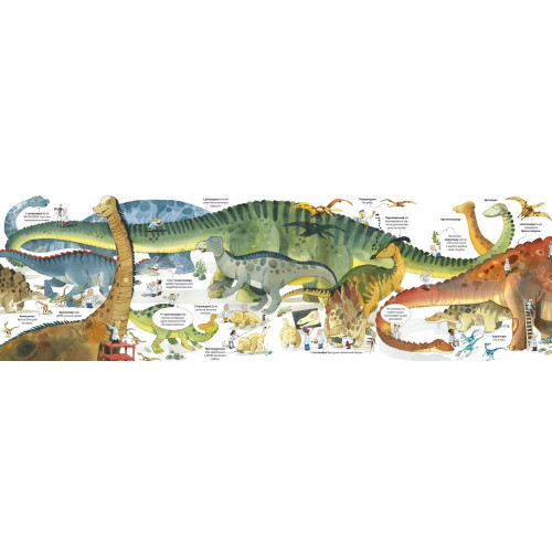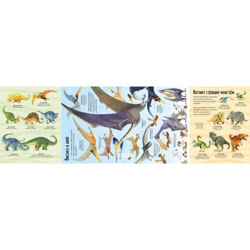Видавництво "ARTBOOKS" Велика книга динозаврів., Фабіано Фіорін 978-617-7688-65-4 Нумо знайомитись зі світом прадавніх створінь! Ти зможеш усе гарненько роздивитися завдяки 4 велетенським розгорткам.Динозаври були найбільшими з живих істот, що ходили по нашій планеті. Хтось був завдовжки із цілий басейн, а в когось лише самі крила були вищими за двоповерховий автобус. Відкрий розгортки і знайходь там найдовших, найважчих та найстрашніших з усіх створінь — від могутнього брахіозавра до страхітливого тиранозавра.