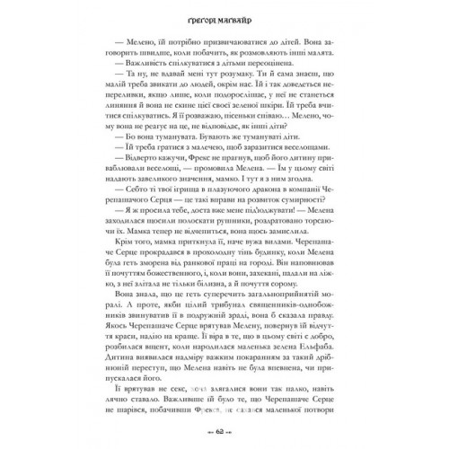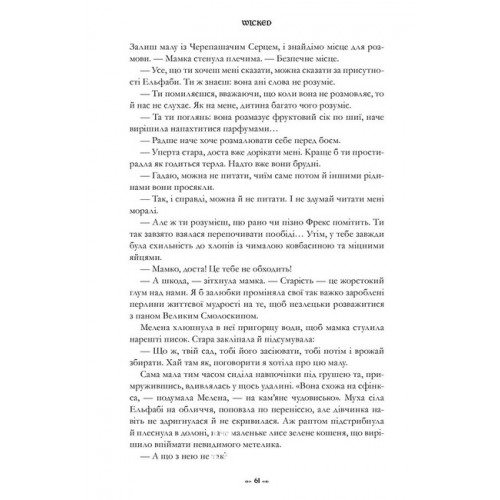 Видавництво "ARTBOOKS" Wicked. Життя та часи Злої Відьми Заходу., Ґреґорі Маґвайр 978-617-523-294-1 Десь на Дорозі із Жовтої Цегли…Темне фентезі, політична сатира, ретеллінг відомої казки, філософська притча… Так, усе це про «Wicked. Життя та часи Злої Відьми Заходу» Ґреґорі Маґвайра.Всі ми, хто читав у дитинстві про чарівника Країни Оз, досі знали лише версію Дороті. Так, вона перемогла злу відьму. Але хто така ця відьма? Чому стала злою? Звідки взагалі береться зло?Ґреґорі Маґвайр створює неймовірно яскравий і деталізований фентезійний світ, який перевертає з ніг на голову всі наші уявлення про казку. Тварини тут не лише розмовляють, але прагнуть поваги й рівних прав, Бляшаний Лісоруб стає жертвою домашнього насильства, а маленька зеленошкіра дівчинка Ельфаба виростає лихою відьмою, украй розумною, втім недооціненою. Але вода й тут не доведе її до добра…