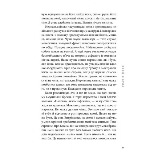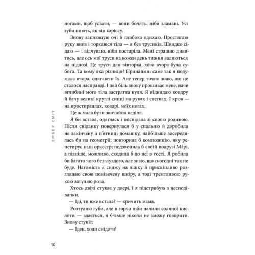 Видавництво "ARTBOOKS" Якою я була., Ембер Сміт 978-617-523-271-2 Провокативний янґедалт-дебют про травму й дорослішання.Іден хотіла би відмотати час назад і прожити той день знову. Тоді вона б усе зробила інакше: не реагувала би на його жарти, не ігнорувала би дивних поглядів. І точно замкнула би двері.Але часу не повернеш. Тож Іден ховає правду, а з нею і себе, якою була колись. Вона вдає, що їй не потрібні дружба, любов, справедливість. Та коли її світ розвалюється, Іден врешті розуміє: її може врятувати тільки вона сама.