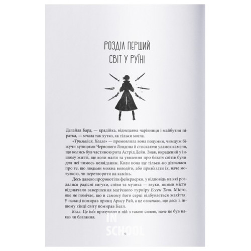 «Як вбити бога?» Це питання ставлять собі Лайла і Келл, коли темрява охоплює їхню батьківщину — Червоний Лондон. Осарон, найпохмуріше дітище Чорного Лондона, за короткий час захопив владу в місті. І він хоче одного: щоб його шанували. Навіть найсильніші маги імперії не можуть протистояти йому, тому Келл і Лайла розробляють відчайдушний план. Разом із піратом Емері Алукардом, якого зреклася його родина, та підозрілим Антарі Голландом вони вирушають на пошуки магічного артефакту, який може поставити на місце навіть Осарона. «Заклинання Світла» — це чиста магія і грандіозне завершення чудової серії.