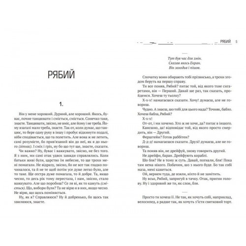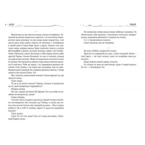 Амок., Поспєлов Артем 978-966-982-841-5 Їх було троє. Дев'ятнадцятирічний Рябий, який носить великі окуляри та їздить на чотирьохколісному велосипеді. Мес, який купує екстазі і за плечима якого сповнене насиллям дитинство. І третя, Ада — дівчина з перерізаними венами, яка чує дивний голос. Незабаром почнеться загадкове Шоу Кролика Ло, і заблукані душі потягнуться вервечкою до Доктора. Зміни — ось чого вони прагнуть. Але для цього трійця мусить подолати випробування. Кожен із них зустрінеться із самим собою, щоб зазирнути в очі тому, хто прочитає цей роман. Бо вони — це ми, і ми занадто довго ходили по колу.