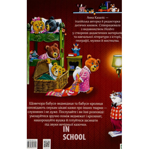 Бабусині казки на добраніч., Казаліс А. 978-966-982-274-1 Чи є щось затишніше, ніж бабуся, яка розповідає казки на ніч? «Бабусині казки на добраніч» — це теплий, барвистий світ добрих історій, у яких живуть лисички, ведмедики, зайці та інші казкові звірята. Вони граються, навчаються дружби, дбають одне про одного й допомагають малюкам засинати з усмішкою. Ця книжка — наче колискова в словах, сповнена любові, турботи й м’якенької магії дитинства.