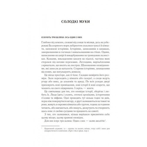 Беззоряне море., Морґенштерн Е. 978-617-17-0317-9 Закарі Езра Роулінз — звичайний студент, що живе в університетському містечку у Вермонті. Та якось йому до рук потрапляє загадкова книжка із запилюженої полиці бібліотеки. Затамувавши дух, Закарі гортає сторінку за сторінкою, захоплений долею нещасних закоханих, коли стикається з геть несподіваним — історією з власного дитинства. Дивна книжка розбурхує його уяву, тож він вирішує розкрити її таємницю. Подорож, сповнена неочікуваних пригод, поступово приводить його на маскарад у Нью-Йорку, до секретного клубу та підпільної бібліотеки, схованих глибоко під землею. Хлопець зустріне тут тих, хто пожертвував усім заради цього сховища. Але на нього полюють і хочуть знищити. Разом з Мірабель, безстрашною захисницею цього світу, і Доріаном, чоловіком, у вірності якого ніхто не може бути впевненим, Закарі мандрує звивистими тунелями, темними сходами й танцювальними залами, щоб дізнатися нарешті про справжнє призначення цього царства і про свою долю.