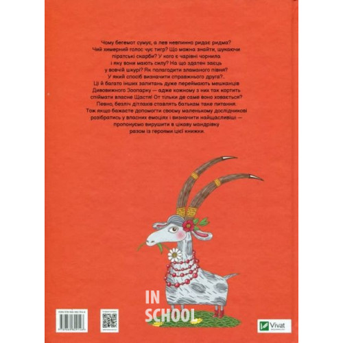 Де ховається щастя., Ольга Пилипенко 978-966-982-914-6 Чому бегемот сумує, а лев невпинно ридає ридма? Чий химерний голос чує тигр? Що можна знайти, шукаючи піратські скарби? У кого є чарівні чорнила і яку вони мають силу? На що здатен заєць у вовчій шкурі? Як полагодити зламаного півня? У який спосіб визначити справжнього друга?..Ці й багато інших запитань дуже переймають мешканців Дивовижного Зоопарку — адже кожному з них так кортить спіймати власне Щастя! От тільки де саме воно ховається?Певно, безліч дітлахів ставлять батькам таке питання. Тож якщо бажаєте допомогти своєму маленькому дослідникові розібратись у власних емоціях і визначити найщасливіші — пропонуємо вирушити в цікаву мандрівку разом із героями цієї книжки.