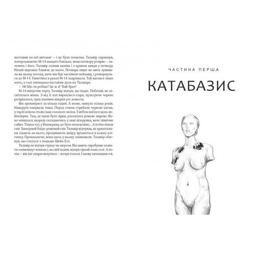 Дім солі., Тараторіна Світлана 978-966-982-728-9 Спалахи - катастрофи нез’ясованого характеру - перетворили колись квітучий півострів Кіммерик на попіл. Дешт - світ нового порядку. Мешканці землі, яким вдалося вижити, стали засоленими, а з летючої станції «Мати Вітрів» на померлий світ дивляться Старші Брати. Один із них, Талавір, отримує завдання розслідувати вбивство, а також знайти Золоту Колиску - таємничу зброю, розроблену вченим Мамаєм. Та, ступивши на висушену твердь Дешту, він уже не зможе повернутися. Талавір муситиме пройти випробування нищівною правдою, що виявиться страшнішою за гарячий всезнищенний суєр. Солоні гранули на скривавлених пучках древніх богів розкажуть свою історію, історію спопелілого світу…