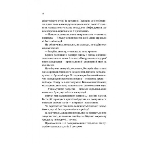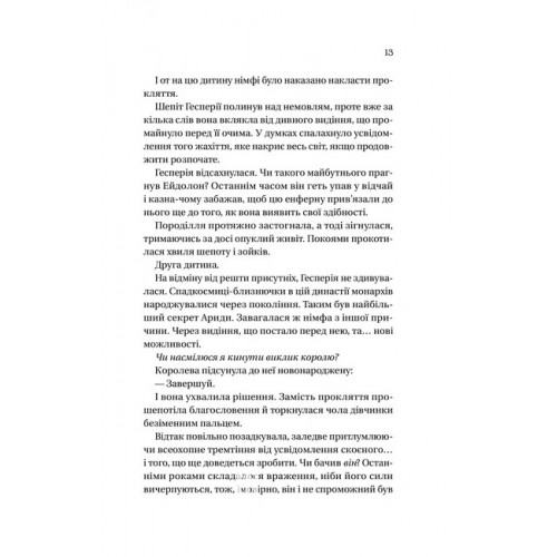 Домініони. Книга 1. Корона брехні., Ебіґейл Овен 978-617-17-0649-1 Багато століть поспіль Аридським домініоном керують королеви, наділені магічними здібностями. І повсякчас над ними нависає загроза викрадення правителем Тиндри — лихим, брехливим та безсмертним королем Ейдолоном, який має владу над тінями. Тому королеви Ариди ревно тримають у таємниці те, що через покоління в них народжуються спадкоємиці-близнючки, одна з яких повинна заміняти сестру, якщо та зникне або загине.Мерен, або Меренеїта Еванджелін ХІІ, ладна віддати життя за сестру, Тебру Ютерію І. Звикла жити під машкарою простолюдинки, вона навчена за потреби прослизати до палацу і грати роль принцеси. Отож, коли бабуся дівчат, чинна королева, помирає і Тебра має сісти на трон, Мерен готується сповнити своє призначення — підмінити сестру напередодні коронації. Однак її викрадає таємничий Привид Тіней, який прагне скористатися магією принцеси, не уявляючи, що викрав не ту…