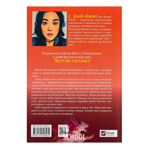 Жара. Вартові світанку /зі зрізом/., С. Джей-Джонс 978-617-17-0846-4 Магія заборонена. Чарівників називають «мерзотою» і звинувачують у навалі монстрів, що заподіяла численні руйнації в минулому.Цзінь Жара має досить клопотів і без чуток про чаклунів-чудовиськ — дівчина мусить задовольняти жорстокі примхи мачухи, доглядати за сліпою молодшою сестрою та тримати власний магічний дар під контролем. Але коли випадкова зустріч із юнаком на ім’я Хань призводить до контакту з таємною магічною визвольною організацією «Вартові світанку», Жара розуміє, що в цих чутках може критися набагато більше, ніж вона дозволяла собі припустити. Таємнича недуга заражає магів Занхея і перетворює їх на монстрів. Щоб відновити гармонію та принести мир у світ, Жара має відкрити в собі силу стихійного воїна, інакше баланс між порядком і хаосом буде втрачено назавжди.
