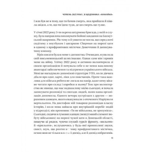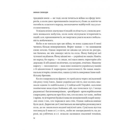Жінки свободи., Марина Мірзаєва 978-617-17-0350-6 «Жінки Свободи» — це розповіді про жінок у лавах ОУН та УПА. Жінок, які усвідомлено обрали боротьбу та підпілля. Юні, сповнені жаги життя, мрій і запалу. Люди, які творили історію. Які доводили до сказу окупантів і платили надвисоку ціну. Імена, про які ми знаємо дуже мало або не знаємо нічого. Або ж знаємо лиш те, що нав’язала радянська влада.Розповіді про героїнь минулого доповнені фронтовими замальовками самої «Мамайки».Ця боротьба, що триває вже два століття, точиться не тільки за територіїії, але й за душі та сенси. Два століття — одна війна, один ворог.