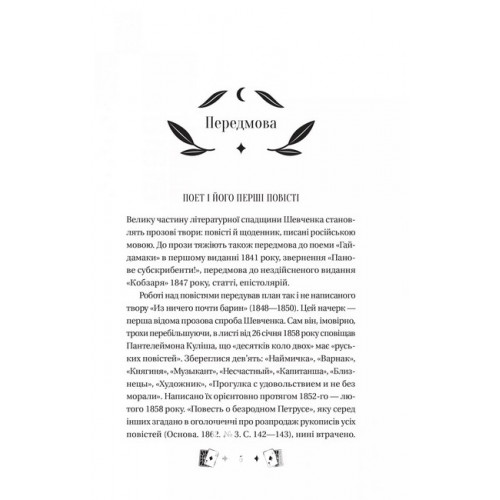 Княгиня, зі зрізом., Тарас Шевченко 978-617-17-0671-2 Зворушлива історія наймички, яка до кінця життя не могла зізнатися у своєму материнстві, відверта сповідь колишнього каторжника Кирила, моторошні сільські бувальщини та драматична доля княгині Катрусі — три перші Шевченкові повісті поновому розкривають нам світ людини першої половини ХІХ століття, її переживання, змагання, мрії та розчарування. Блискучі переклади українською мовою знаних майстрів слова Бориса Антоненка-Давидовича й Віктора Сапіцького ніби наближають Шевченка до нашого часу: його герої та героїні живуть, кохають, страждають і борються, як ми сьогодні.Книга «Княгиня» — це збірка трьох перших повістей Тараса Шевченка, що були написані Кобзарем у період заслання. Прозові твори Шевченка створені на ідейному підґрунті поем письменника, вони є свідченням болю і страждань автора, та водночас — його незламної віри в силу людського духу й правду. Погляд на творчість Кобзаря з перспективи його прози відкриє читачам несподівані й подекуди значно більш позачасові сторони творчого доробку класика.Повісті Шевченка поєднують біографічні мотиви, особисті спостереження та соціальні міркування автора. Тарас Григорович ретельно змальовує побут життя в селі й звичаї тогочасного суспільства, що нерідко пригнічували людей й підштовхували до відчайдушних кроків.