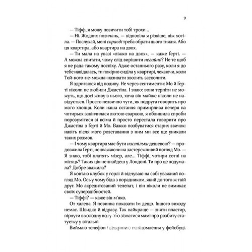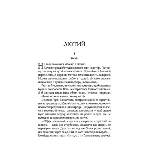 Квартира на двох., О’Лірі Б. 978-966-982-097-6 Спати в одному ліжку, але ніколи не бачитися? Цілком можливо, якщо ви винаймаєте квартиру з суворою умовою: двом сусідам можна перебувати в ній лише в різний час. Тіффі працює вдень, а Леон — вночі, тож проблем не мало б виникати. Та завдяки раптовій потребі в листуванні між ними зав’язується дружба, а згодом і дещо більше… Чи можливо закохатися в того, кого ніколи не бачив, і довірити йому всі таємниці? І чи готові герої порушити через це всі правила? Ця книжка змусить вас пригадати романтику живого листування, занурить в авантюрні пригоди та підкорить увагою до деталей. Бет О’Лірі — британська письменниця, раніше працювала в дитячому видавництві, а дорогою з роботи й на роботу в потязі написала свій перший роман - “Кімната на двох”. Книжки Бет перекладені понад 30 мовами, тепер також і українською. Ідею сюжету дебютного роману Бет О’Лірі «Квартира на двох» підказала власна історія стосунків: її хлопець-лікар ходив на нічні чергування, тож іноді вони тижнями не бачили один одного. Одначе вона могла відстежувати його життя: скільки чашок кави залишилось на столі, що він їв і чи змінив місце закладки в книжці. Тоді Бет замислилася, чи можна дізнатися щось про когось, із ким ти жив разом, але ніколи не перетинався?