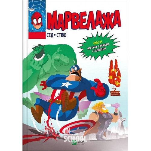 Марвелажа., Сед, Стіво 978-617-17-0602-6 З великою силою приходить велике чортзна-що!Пародійне бандесіне про американських супергероїв від європейських авторів!Щоб написати сценарій до цього комікса, Сед по сім разів передивився всі марвелажові фільми й оформив квитки в кіно як «робочі витрати». Нині він в розшуку за кіношуканство.Стіво, художник і колорист вирішив створити цей комікс за одним присідом, замість шкрябати потрошку день у день. Як наслідок, після 76 безсонних діб за малюванням яскравезних костюмів став частково дальтоніком. І трішки ошалів.Від ціх стрипів ошалієте й ви, адже на вас чекають чудернацькі ситуації, незграбні порятунки, нелогічні подвиги, божевільні експерименти й неприборкані геніальні технології найкумедніших героїв Землі – на роботі й на відпочинку.