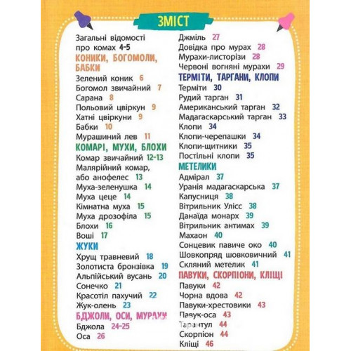 Мініенциклопедія. Комахи та павуки 978-966-982-723-4 Дитяча мініенциклопедія про комах і павукоподібних — чудова книжка для всіх, хто хоче поринути в загадковий світ цих істот. Юні читачі дізнаються чимало фактів про спосіб життя метеликів і жуків, мурах і бджіл, павуків і скорпіонів. Яскраві фотографії дозволять розглянути навіть найдрібніші особливості будови цих маленьких, але дуже цікавих створінь природи.