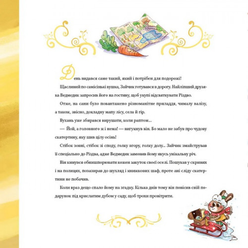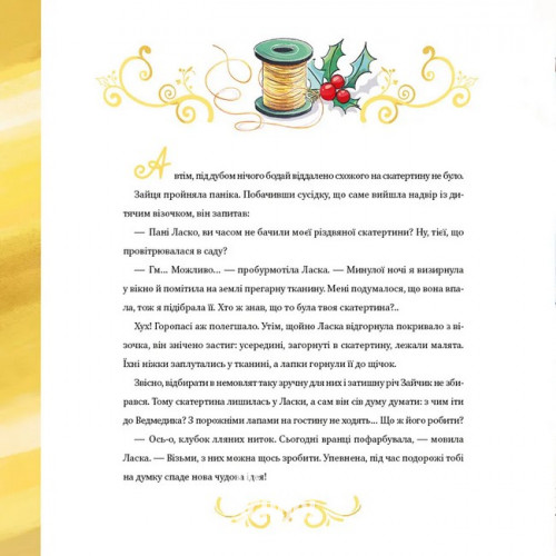 Найкраще Різдво., Мюріель Цюрхер 978-617-17-0654-5 Живе собі в чарівному лісі малий Зайчик. І ось напередодні Різдва в його житті трапляється радісна подія: найліпший друг запрошує на гостину, щоб відсвяткувати вкупі. Нумо супроводжувати вуханя в цій подорожі й допомагати в пошуках прегарного подарунка для приятеля!Книжка має 5 великих «віконець», у які можна заглянути всередину осель лісових звірів, а також макети для паперових іграшок, які можна змайструвати разом із батьками.