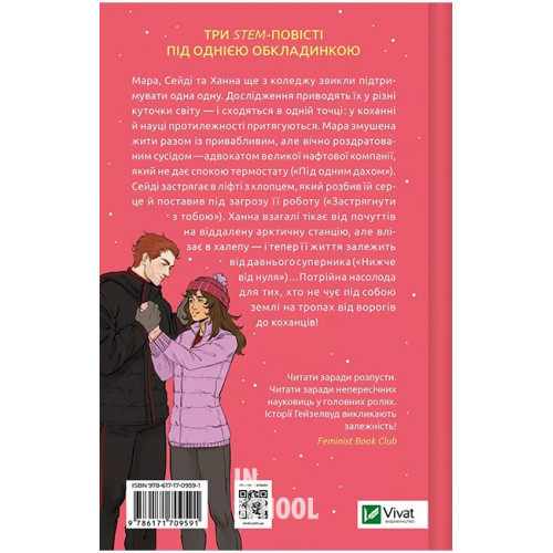Ненавиджу тебе кохати /зі зрізом/., Алі Гейзелвуд 978-617-17-0959-1 Мара, Сейді та Ханна ще з коледжу звикли підтримувати одна одну. Дослідження приводять їх у різні куточки світу — і сходяться в одній точці: у коханні й науці протилежності притягуються.Мара змушена жити разом із привабливим, але вічно роздратованим сусідом — адвокатом великої нафтової компанії, який не дає спокою термостату («Під одним дахом»).Сейді застрягає в ліфті з хлопцем, який розбив їй серце й поставив під загрозу її роботу («Застрягнути з тобою»).Ханна взагалі тікає від почуттів на віддалену арктичну станцію, але влізає в халепу — і тепер її життя залежить від давнього суперника («Нижче від нуля»)…Потрійна насолода для тих, хто не чує під собою землі на тропах від ворогів до коханців!