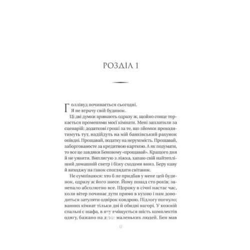 Нора змінює сценарій., Аннабель Монаган 978-617-17-0596-8 Коли чоловік залишив Нору Гамільтон із двома дітьми й купою боргів у старому занедбаному будинку, вона написала сценарій свого життя. І ось фільм про їхнє буття знімають у неї вдома… Нарешті вона виплатить податок на нерухомість, зведеться на ноги й упиватиметься щастям. Та несподівано, коли знімальна група їде, Лео Венс, сексуальний красунчик, який зіграв її колишнього, залишається... На тиждень. За кожен день він ладен платити тисячу доларів.Сторічному Нориному будинку якраз не завадить підлатати все, що тріщить, протікає й відвалюється. Чому ні? Гра з вогнем починається. Від поцілунку з Лео Нора втрачає відчуття реальності й занурюється в дивовижний сон, балансуючи над прірвою. Так сумна історія розлучення перетворюється на голлівудську історію кохання з не сподіваними поворотами, які виводять героїв на потрібний шлях.