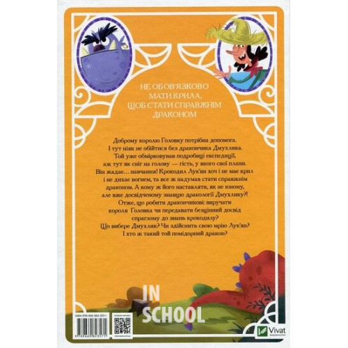 Скарби Смалюнчика й помідорний дракон., Марцин Мортка 978-966-982-357-1 Доброму королю Головку потрібна допомога. І тут ніяк не обійтися без дракончика Дмухлика. Той уже обмірковував подробиці експедиції, аж тут як сніг на голову — гість, у якого свої плани. Він жадає… навчання! Крокодил Лук’ян хоч і не має крил і не дихає вогнем, та все ж надумав стати справжнім драконом. А кому ж його наставляти, як не юному, але вже досвідченому знавцю дракології Дмухлику?! Отже, що робити дракончикові: виручати короля Головка чи передавати безцінний досвід спраглому до знань крокодилу? Що вибере Дмухлик? Чи здійснить свою мрію Лук’ян? І хто ж такий той помідорний дракон?
