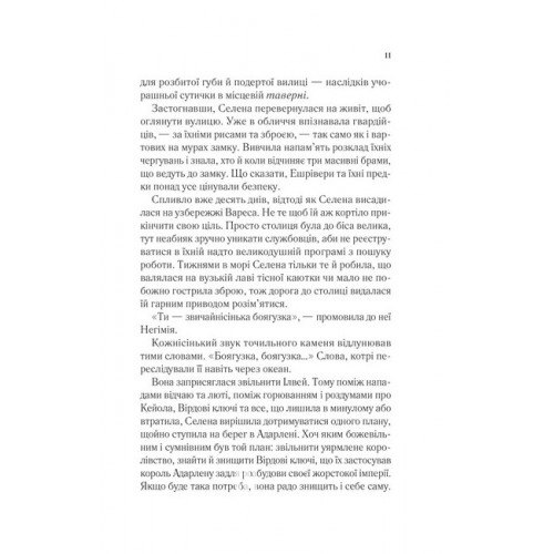 Спадкоємиця вогню., Сара Маас 978-617-17-0758-0 Селена Сардотін постає з попелу, щоб сяяти яскравіше, ніж раніше. Селена пережила смертельні змагання, втрату найближчих і розбите серце, але втрималася на рівних. Утім вона далі платить за це дорогу ціну й цього разу вирушає до нових земель, щоб віч-на-віч стикнутися там із найтемнішою правдою… Правдою про свою спадщину, яка може назавжди змінити її життя — і майбутнє. Тим часом на обрії вже з’являються жорстокі та жахливі сили, які прагнуть безмежного володарювання. Чи не забракне Селені снаги не лише боротися зі своїми внутрішніми демонами, а й протистояти злу, яке ось-ось вирветься назовні?