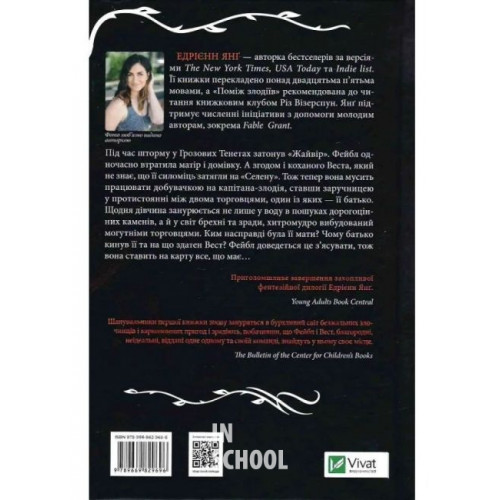 Світ Звуження. Книга 2. Однойменні., Едрієнн Янґ 978-966-982-969-6 Під час шторму у Грозових Тенетах затонув «Жайвір». Фейбл одночасно втратила матір і домівку. А згодом і коханого Веста, який не знає, що її силоміць затягли на «Селену». Тож тепер вона мусить працювати добувачкою на капітана-злодія, ставши заручницею у протистоянні між двома торговцями, один із яких — її батько. Щодня дівчина занурюється не лише у воду в пошуках дорогоцінних каменів, а й у світ брехні та зради, хитромудро вибудований могутніми торговцями. Ким насправді була її мати? Чому батько кинув її та на що здатен Вест? Фейбл доведеться це з’ясувати, тож вона ставить на карту все, що має…