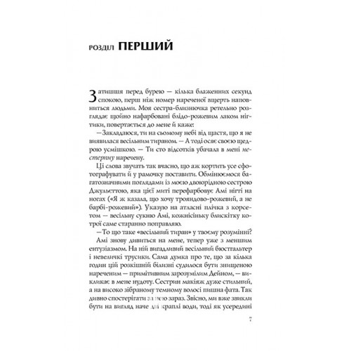 Випадкові наречені., Крістіна Лорен 978-966-982-318-2 Олів — хронічна невдаха. У дитинстві вона застрягла в автоматі з іграшками, і ця історія досі бентежить її. А ще — вічні фейли на роботі, в особистому житті, в усьому. Її сестра-близнючка Емілія — повна протилежність: чарівна, везуча, щойно виграла розкішне весілля і медовий місяць на Гаваях. Але ось прикрість: під час святкування всі гості, включно з нареченими, отруїлися морепродуктами… Усі, крім Олів та Ітана — похмурого і дратівливого боярина.Путівку вже не повернути — то чому б не скористатися шансом? Удвох, удати закоханих і вирушити на райські острови. Що може піти не так, якщо ти не переносиш свого «партнера» з першого погляду? «Випадкові наречені» — це вибухова суміш іронії, пристрасті, дотепних суперечок і чарівної романтики.