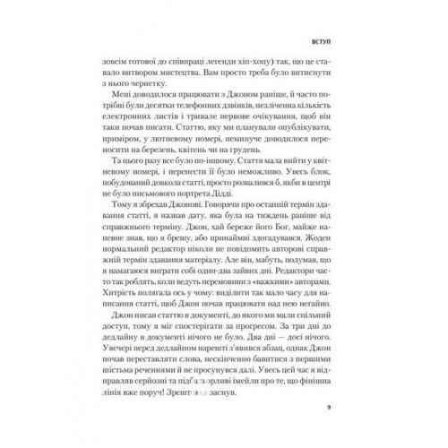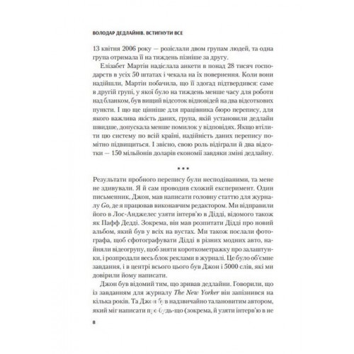 Володар дедлайнів. Встигнути все., Кристофер Кокс 978-966-982-840-8 Не такий страшний дедлайн, як його малюють. А як щодо чотирьох сучасних вершників Апокаліпсису? Коронавірус змінюється Розмиром, і Дедлайн іде плече до плеча з Реченцем. Числа в календарі жахають виконавця. Або дозволяють устигнути все, не відхиляючись від графіків.Визначте дедлайн на купівлю й прочитання цієї книжки, щоб не запізнитися до ресторану, який відкривають без стресів і паніки, на власні очі побачити рукотворне засніження гори та як сходить із конвеєра пасажирський літак. Ви дізнаєтеся, як доставляють великодні лілії, і побуваєте за лаштунками театру перед прем’єрою. Потрапите в ескадрилью військово-повітряних сил, що рятуватиме постраждалих від урагану, і в крамницю Best Buy напередодні чорної п’ятниці. Поспостерігаєте за засновниками стартапу, що представляють свій продукт громадськості, візьмете участь у передвиборчій кампанії. Опанована наука, як установлювати та обнуляти власний таймер, створюватиме простір для всіх ваших справ. Простір, у якому, на щастя, є час для завершення роботи, час для роздумів і час на відпочинок.Про автора:Крістофер Кокс — політичний, науковий і бізнес-оглядач The New York Times, GQ, Harper’s, Wired та Slate. Бувши головним редактором журналу Harper’s та виконавчим редактором GQ, працював над історіями, що здобули Пулітцерівську премію, премію PEN за журналістику та численні нагороди National Magazine Awards.