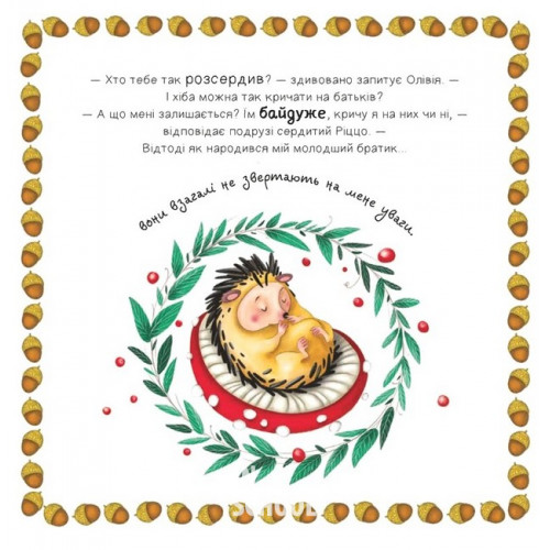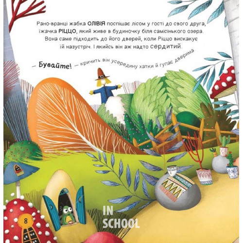 Забудь про страхи — повір у себе!, Ана Серна, Генар Ініґо 978-617-17-0571-5 Ілюстрована книжка написана італійськими авторами сучасної дитячої літератури — Аною Серною та Енаром Ініґо — і оздоблена малюнками від художниці Касандри. На сторінках постає жабка Олівія, яка в простій формі пояснює, як позбутися негативу в спілкуванні та як справлятися зі складними ситуаціями, не вдаючись до ревнощів і маніпуляцій. Вона розповідає кілька історій, що сприяють формуванню стійкого емоційного інтелекту та допомагають будувати здорові взаємини з близькими й рідними.В українському виданні зібрано три книжки від італійського колективу митців.Текст доповнюють яскраві деталізовані ілюстрації, що крізь візуальні образи викликають підсвідомі асоціації з концепціями «правильних» і «хибних» вчинків.