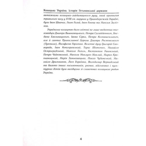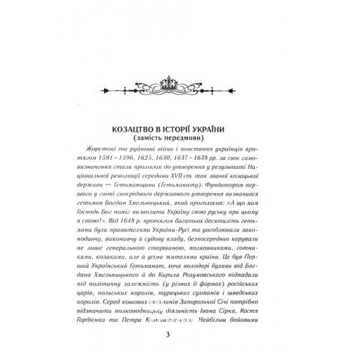 Видавництво "Арій" Козацька Україна. Історія Гетьманської держави (XVII-XVIIIст)., Тарас Чухліб, Олександр Гуржій 978-966-498-831-2 У цій книзі висвітлено найвагоміші події, пов’язані з утворенням у результаті жорстоких повстань і революції в середині ХVІІ ст. Української держави — Гетьманщини (Першого Українсь кого Гетьманату), фундатором якої став гетьман Богдан Хмельницький. У 1648–1657 рр. він був правителем України-Русі та уособ лював законодавчу, виконавчу й судову владу країни. Особливу увагу приділено полководницькій діяльності кошових отаманів Запорозької Січі Івана Сірка, Костя Гордієнка та Петра Калнишевського. Розглянуто постаті видатних полководців Дмитра Вишневецького, Петра Сагайдачного, Богдана Хмельницького та деяких інших. Відтворено образи відважних ватажків козацькогайдамаць кого руху XVIII ст. на Правобережній Україні — Івана Швачки, Гната Голого, Івана Гонти та Максима Залізняка, а також багатьох інших яскравих і сильних осо бистостей ранньомодерної доби.