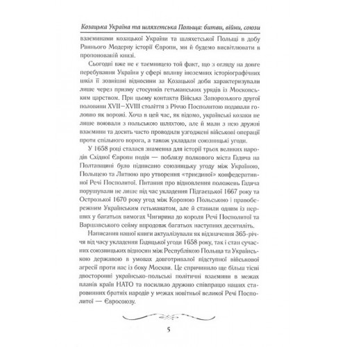 Видавництво "Арій" Козацька Україна та Шляхетська Польща. Битви, війни, союзи., Тарас Чухліб 978-966-498-839-8 У книзі розкрито військово-політичні стосунки України та Польщі впродовж 1500-х — 1700-х років. Особливу увагу звернуто на союзницьку Гадяцьку унію 1658 року, яку було укладено між королівським і гетьманськими урядами задля утворення Українсько-Польсько-Литовської федеративної держави.