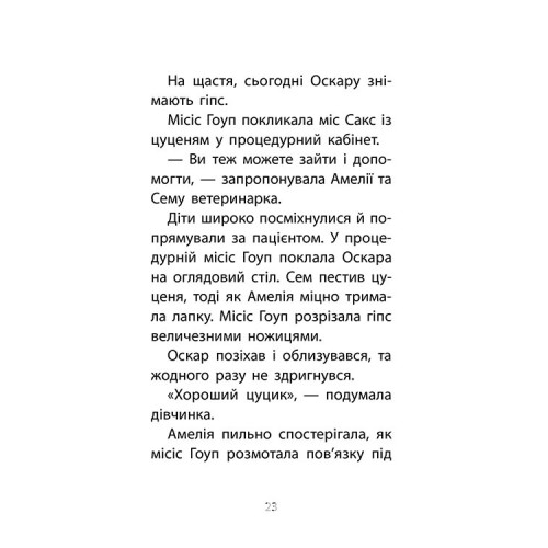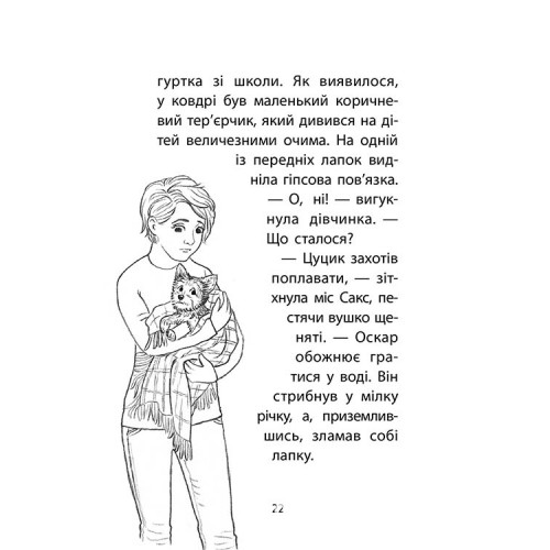 Історії порятунку. Книга 5. Щенячі пригоди, Люсі Деніелс 978-617-7877-19-5 Вчителька драматичного гуртка Амелії та Сема привозить до ветеринарної лікарні «Ковчег» своє щеня із гіпсовою пов’язкою на лапці. Ветеринари знімають гіпс, однак Оскар не стає на лапку. Виявляється йому потрібна тривала реабілітація. У міс Сакс обмаль часу, адже в школі саме йде підготовка до вистави «Чарівник з країни Оз», у якій Амелія отримала головну роль. Чи вистачить дівчинці часу, щоб знайти спосіб допомогти крихітному тер’єрчику?