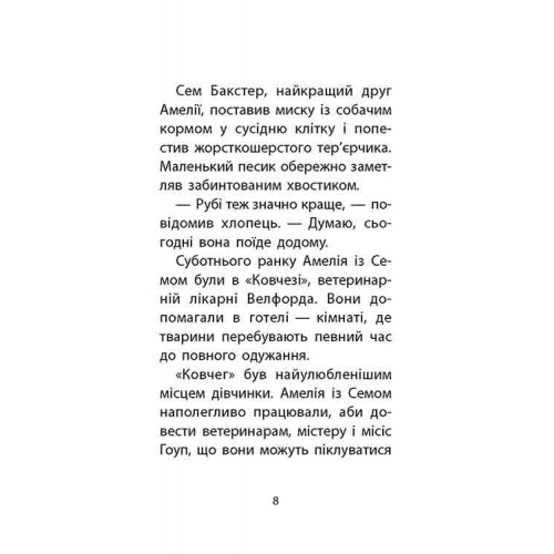 Історії порятунку. Книга 6. Хом'ячок утікач, Люсі Деніелс 978-617-7877-25-6 До ветеринарної лікарні «Ковчег» сестри-близнючки принесли млявого хом’ячка. Єдине, з чим можуть погодитися дівчата — це те, що з їхнім улюбленцем щось не так. Коли бідолашний хом’ячок Гризько втікає, всі повинні згуртуватися, аби знайти його — навіть близнючки! Але це ще не все… Амелії та Сему необхідно знайти дім ще для одних домашніх улюбленців, які виросли більшими, ніж очікувалося.