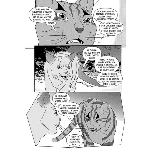 Коти-вояки. Манґа 6. Тигрозір і Саша. Втеча з лісу, Ерін Гантер 978-617-8229-34-4 Світовий бестселер від Ерін Гантер — тепер у манґах!Саша мала все, про що може мріяти кицюня: гарні господарі, які піклувалися про неї вдень, і вільні ночі, коли можна досхочу вивчати навколишні території. Але щасливим дням настав край, отож Саша змушена залишити домівку й оселитися в лісі. Зустрівшись із Тигрозіром, вона закохується й починає думати, що найкращим для неї буде пристати до вояків. Але в Тигрозора забагато таємниць, запальна вдача і не дуже зрозумілі наміри. Яке його справжнє обличчя? І чи можна йому довірити своє життя?
