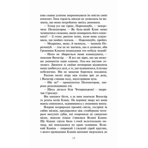 Коти-вояки. Нове пророцтво. Книга 3. Світанок, Ерін Гантер 978-617-7660-41-4 Третя книга другого циклу «Нове пророцтво» серії світового бестселера «Коти-вояки».Повернувшись до лісу, обрані коти мають переконати Клани об’єднатись і вирушити на пошуки нової домівки. Але як це зробити, якщо ніхто не знає, куди саме треба йти і що чекає попереду? Хіба повірять досвідчені провідники словам юних котів і борсучихи?Небезпека вже зовсім поруч, і у знесилених, голодних Кланів обмаль часу. А Зореклан чомусь мовчить і не дає їм більше жодного знаку…!