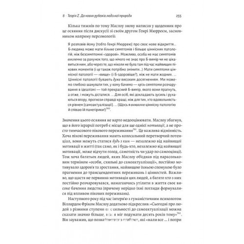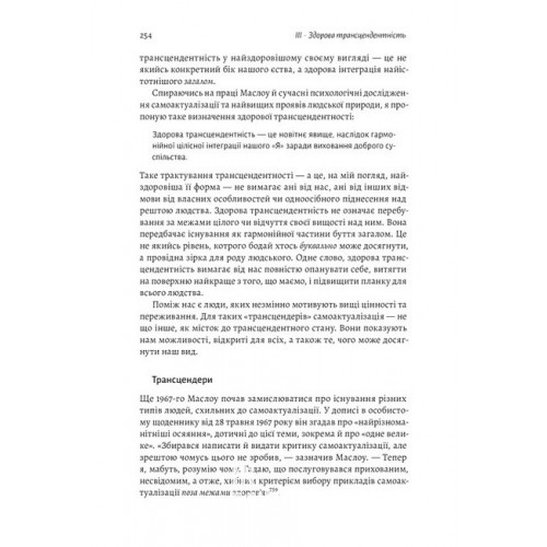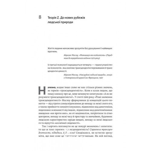Саме її розвиває у своїй новаторській книжці сучасний психолог Скотт Кауфман. Ієрархію потреб він розглядає не як піраміду, а як вітрильник — надійний, стійкий, який рухається своїм шляхом. Кауфман продовжує з того місця, де зупинився Маслоу. Розгадуючи таємниці його незавершеної теорії та об’єднуючи ці ідеї з власними дослідженнями, він доводить — єдиний спосіб самореалізуватися, як би це звучало парадоксально, злитися зі світом.
